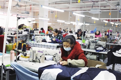 近日,彭水工業園區鉻帥服飾貿易有限公司生產車間內,工人正忙著趕制訂單。據了解,鉻帥服飾貿易有限公司成立于2017年6月,落戶于彭水工業園區,現有廠房面積5500多平方米,為當地村民就業提供便利,實現了家門口就業。