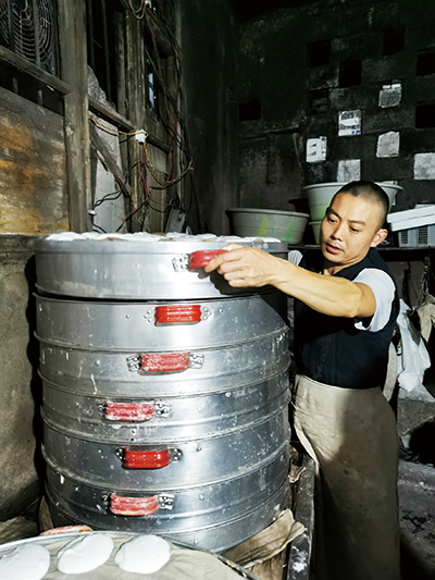 每天磨面、發(fā)酵、蒸粑粑、銷售成了他們固定的生活軌跡。夫妻倆每天早上6點(diǎn)出門,下午1點(diǎn)左右回家,開始準(zhǔn)備第二天的材料,分門別類地磨面、發(fā)酵。庹華云說,因?yàn)槭莻鹘y(tǒng)的老辦法發(fā)酵,所以現(xiàn)在就要把面和好,讓其自然發(fā)酵,等到第二天凌晨2點(diǎn)就可以上鍋蒸了。