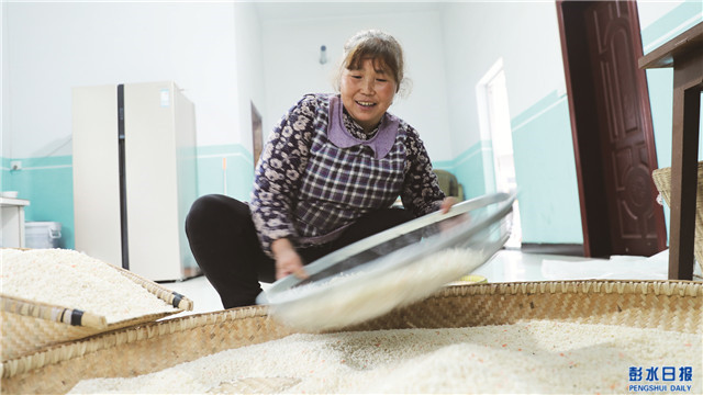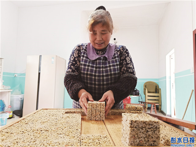 中國彭水網(融媒體記者 黃智宇 陳乾敏/文 陳乾敏/圖)麻餅是彭水苗家春節待客的一道傳統美食,春節期間,鞍子鎮紅星村村民馮佑翠忙碌著制作麻餅。