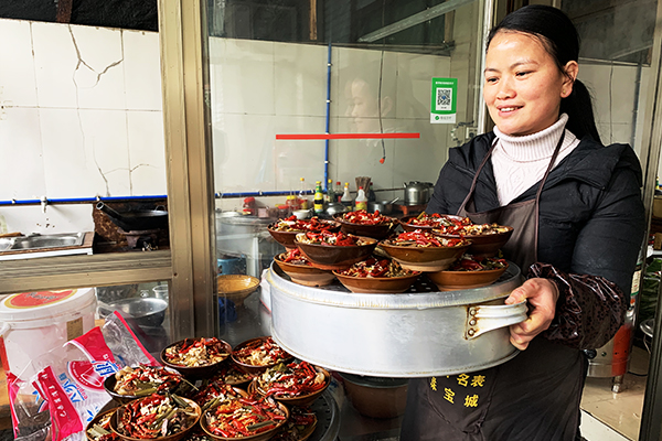 劉金彩介紹,十幾年前,她與丈夫結婚一起回到了彭水。2013年,一家人商量著在朱砂場開一家餐館,以便劉金彩在家照顧孩子增加家庭收入。餐館開起來了,可生意一直不溫不火。2016年,劉金彩發現,當地村民十分喜歡吃羊扣,經常開車去很遠的鄉鎮吃,這讓她有了做羊扣的想法。