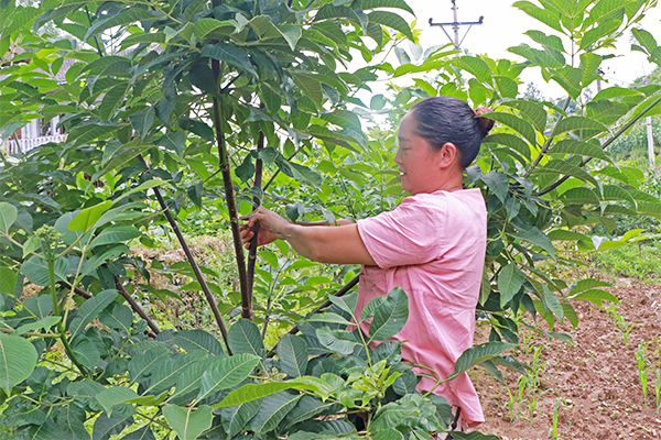 今年是劉小蘭種植吳茱萸的第三個年頭了,部分吳茱萸實現了初掛果。她每天都忙著管護,查看長勢。