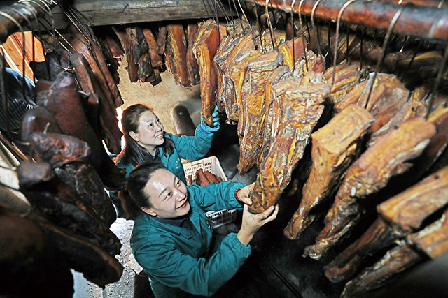 朱靜堂那頭300多斤的肥豬,也將在工人的手下變成美味的臘制品。那塊寄往德國的臘肉,正來源于此。