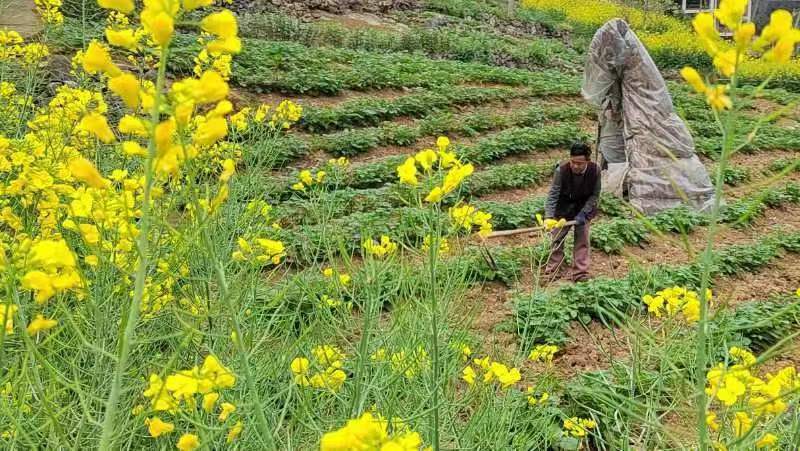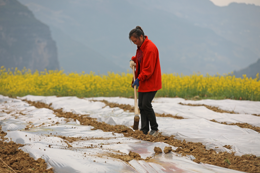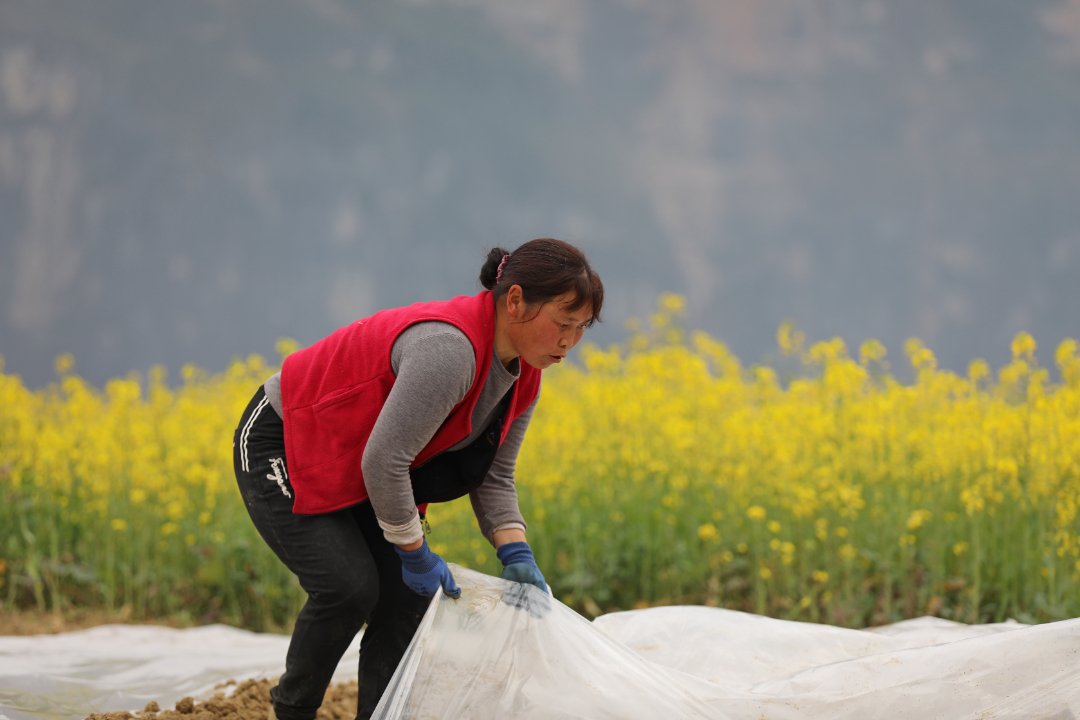 重慶彭水網(記者:趙 勇 陳興盛 任 會)時下,正值春暖花開的季節,全縣各地的油菜花、李子花、桃花等相繼盛開。村民們搶抓農時伴著花香忙春耕,翻耕田地、育苗覆膜、管護農作物,田間地頭呈現出一派春意濃濃的農忙景象。