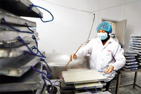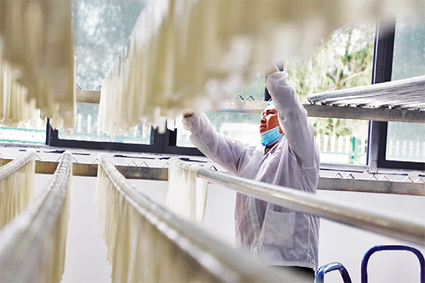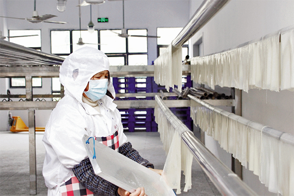 合作社用山泉水進(jìn)行苕粉的生產(chǎn)加工,加工出來的紅薯淀粉純度白、亮度高、品質(zhì)好,苕粉細(xì)膩,入口軟、糯、香、滑,深受顧客喜愛。