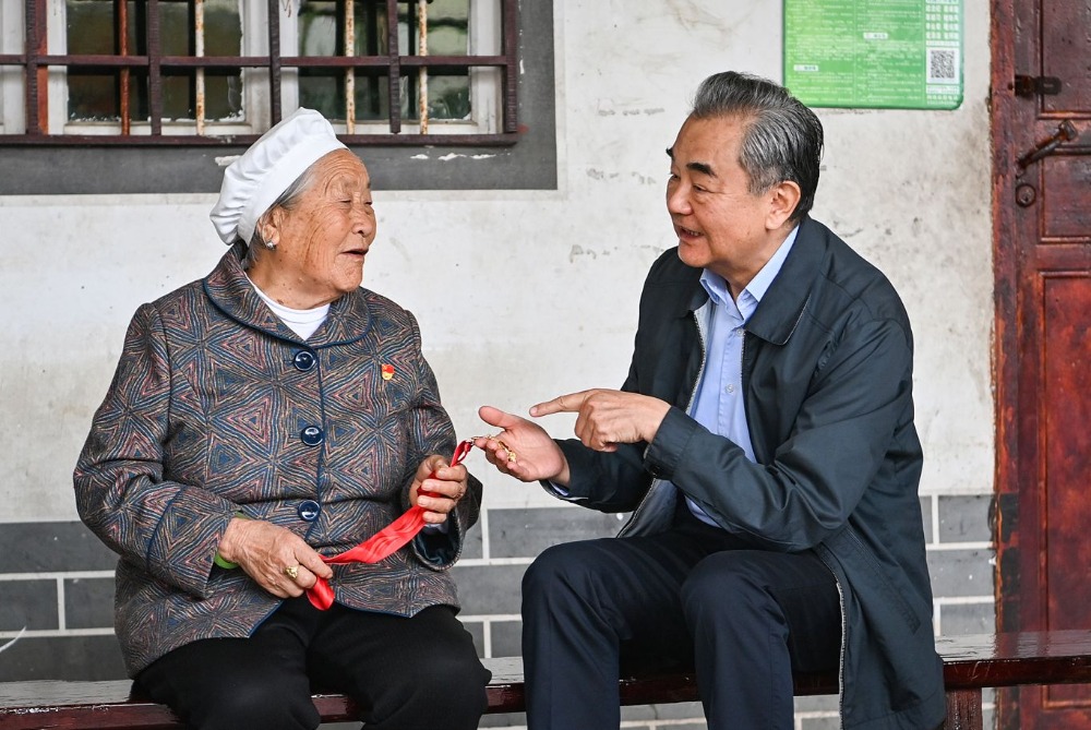 ▲2024年10月15日,中共中央政治局委員、中央外辦主任王毅到重慶市彭水苗族土家族自治縣靛水街道文武社區看望慰問老黨員何祖碧。首席記者 龍帆 攝
