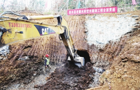 重慶彭水網(記者:李運釗) 1月14日,在位于梅子埡鎮佛山村的老寨水庫引水隧洞工程施工現場,隨著項目施工負責人發布開掘指令,隧道掘進機和挖掘機一邊鉆探一邊掏挖、兩頭施工,頃刻間,隧洞內白色的水汽伴隨著巖石撞擊的火花從挖掘機的鏟斗下升騰開來,標志老寨水庫引水隧洞順利貫通。