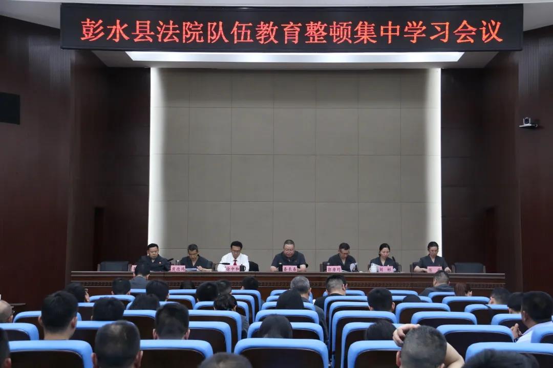 5月10日晚,彭水法院組織全院干警利用下班時間開展隊伍教育整頓集中學習,會議由黨組成員、政治部(機關黨委)主任郭唐均主持,在家院領導、全體干警參加會議。