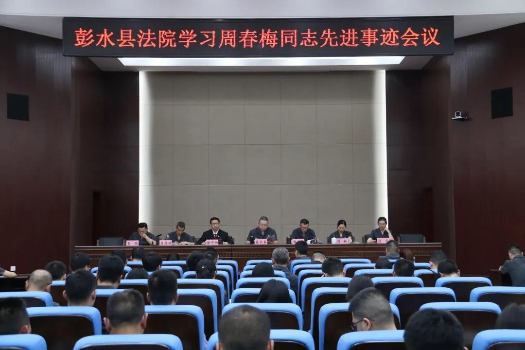 5月10日晚,彭水法院組織全院干警集中學習全國模范法官周春梅先進事跡,會議由黨組成員、政治部(機關黨委)主任郭唐均主持,在家院領導、全院干警參加會議。
